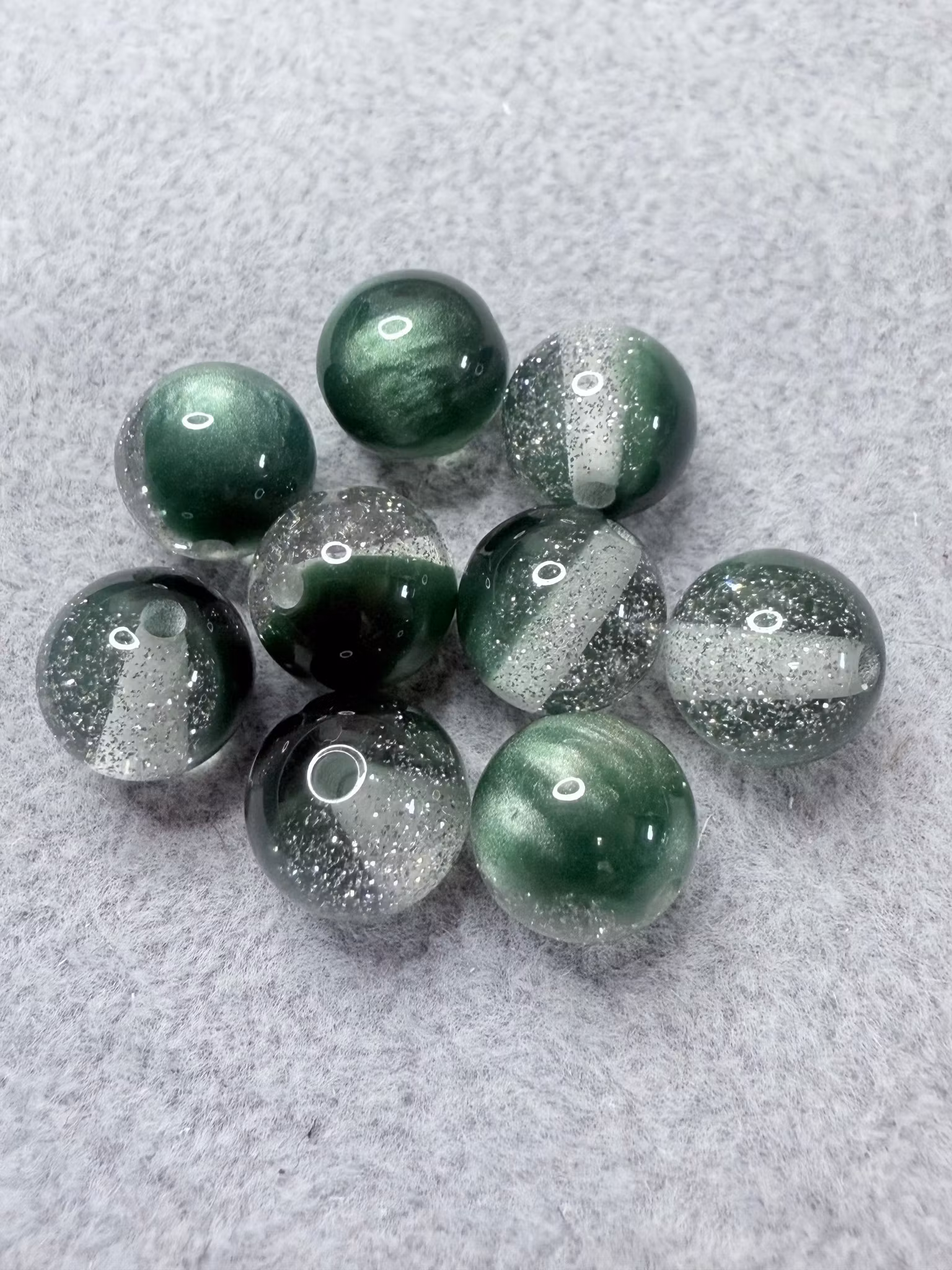 Mörk grön Glittrig 12mm Akrylpärla, 6st