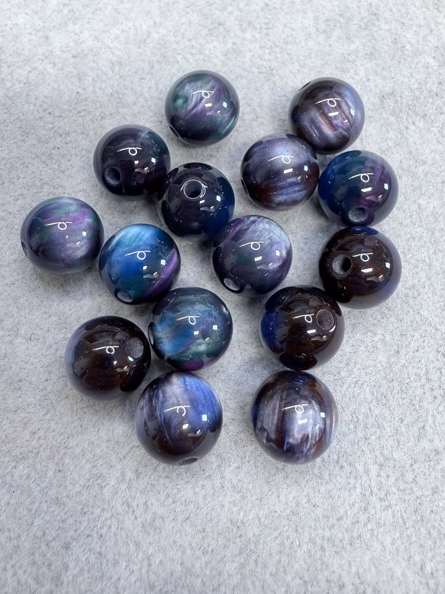 Swirl Blå/Lila 12mm Akrylpärla, 6st