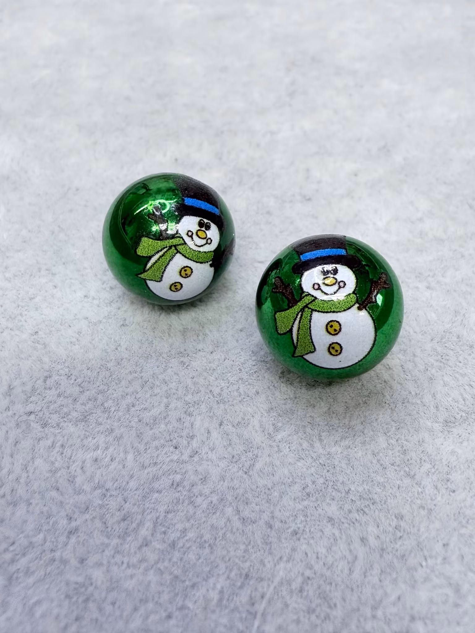 Grön pärla med Snögubbe och Svart Hatt 16mm, 1st