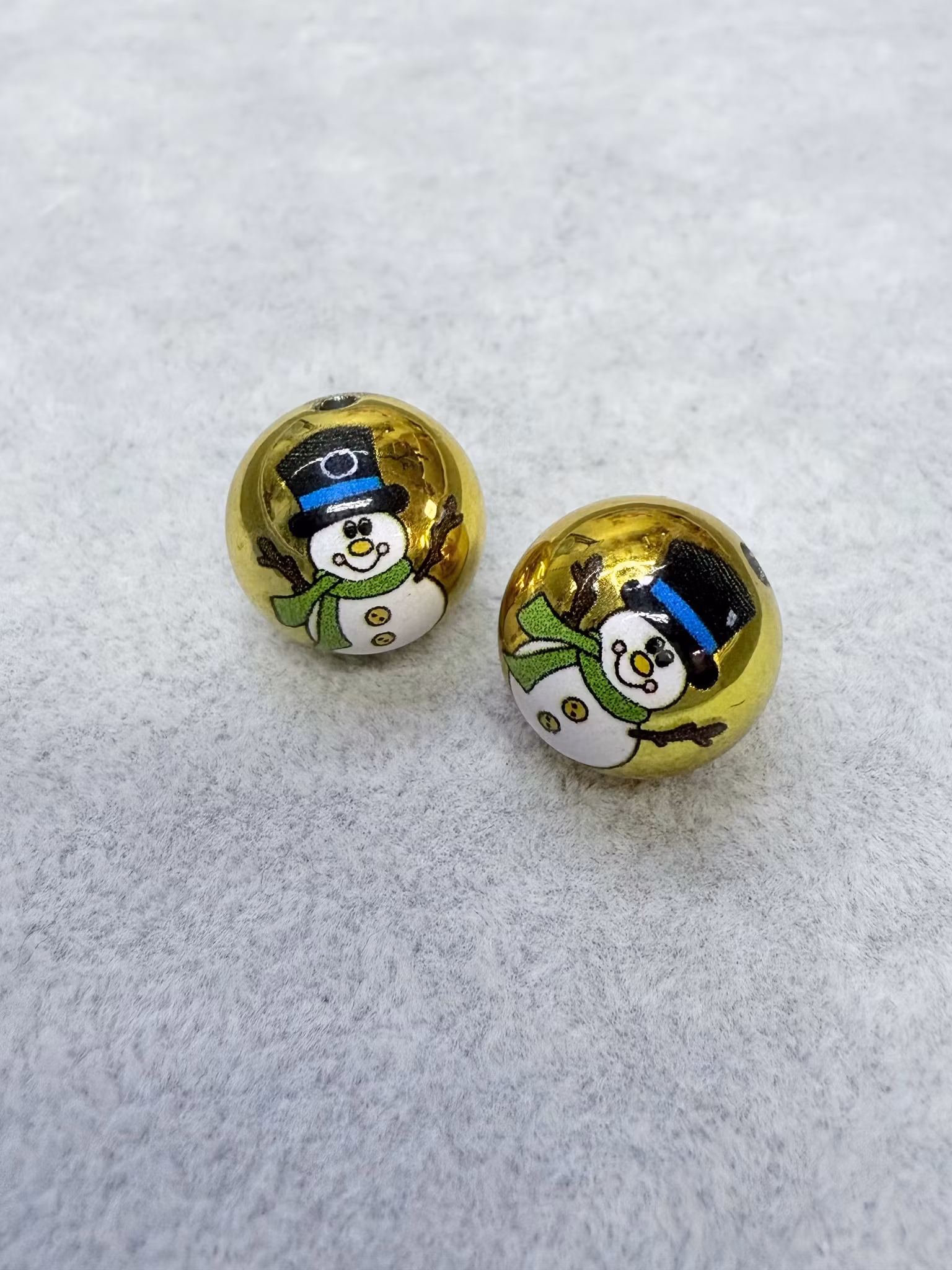 Guld pärla med Snögubbe och Svart Hatt 16mm, 1st