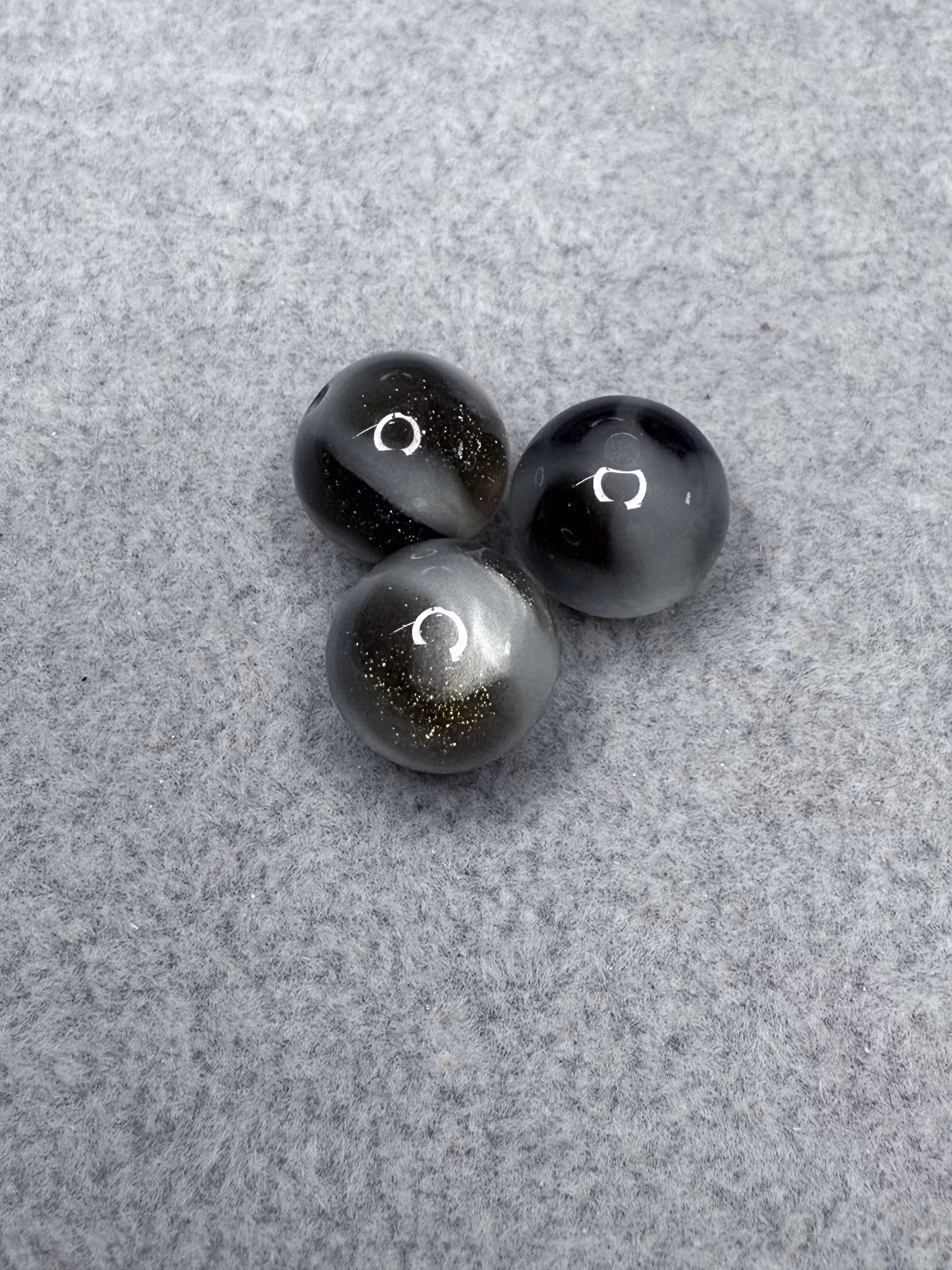 Svart/Vit Pärla med Guld Glitter 16mm, 5st