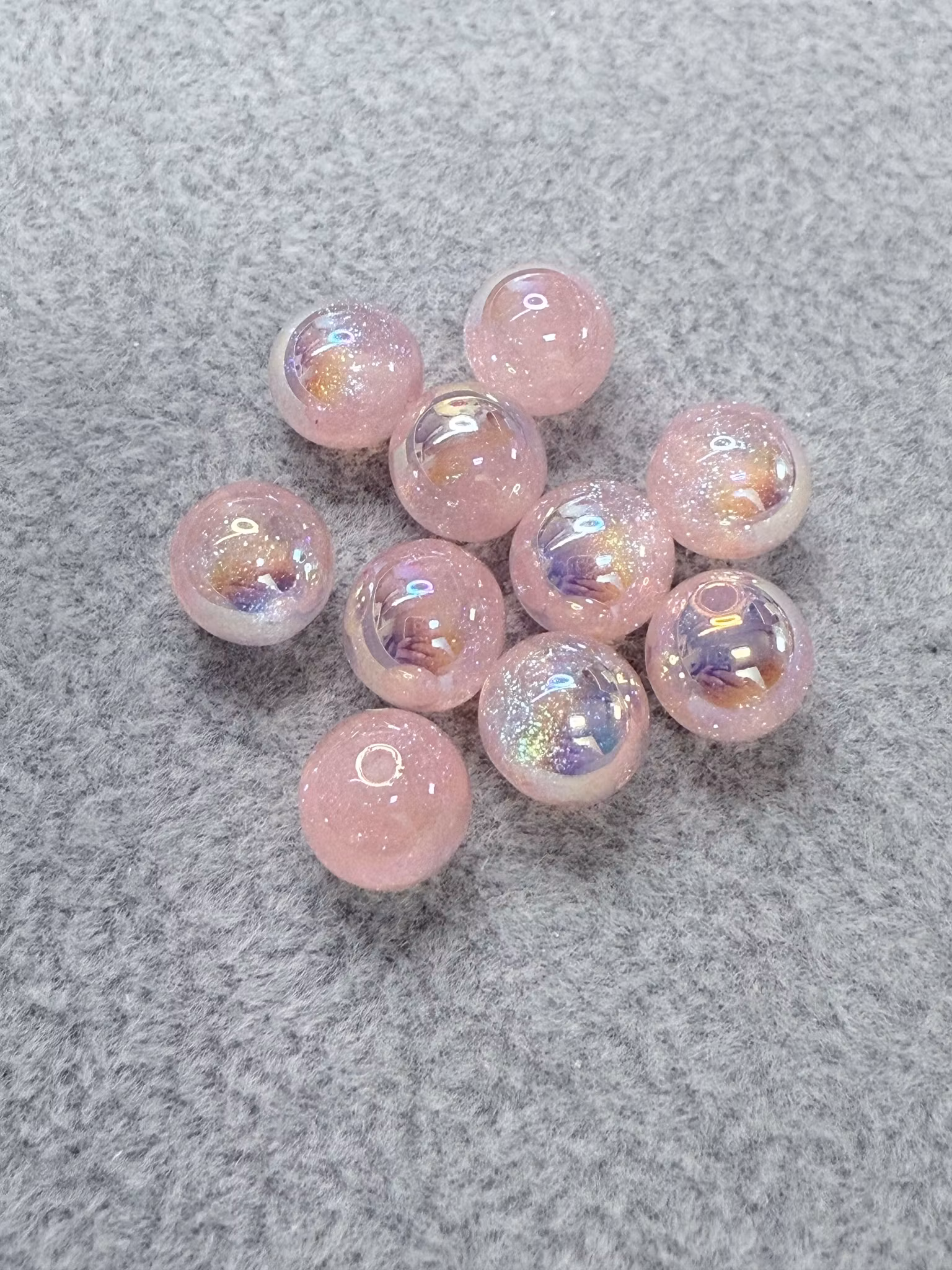 Rosa Glittriga Skinande 8mm Akrylpärla, 10st