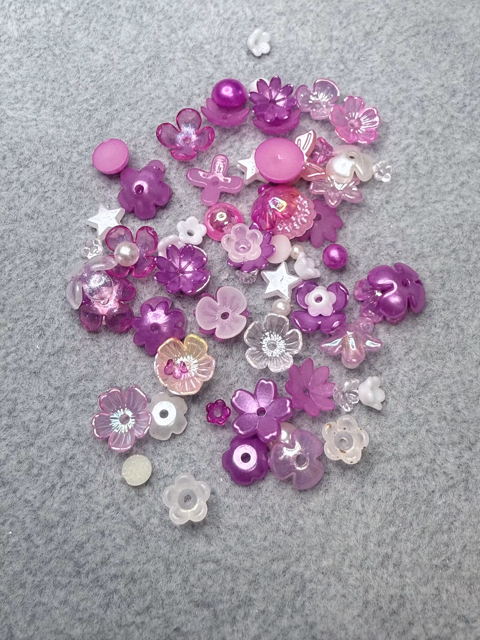 Härlig akrylamix med varierande storlek. Vissa pärlor har hål och andra med platt baksida.