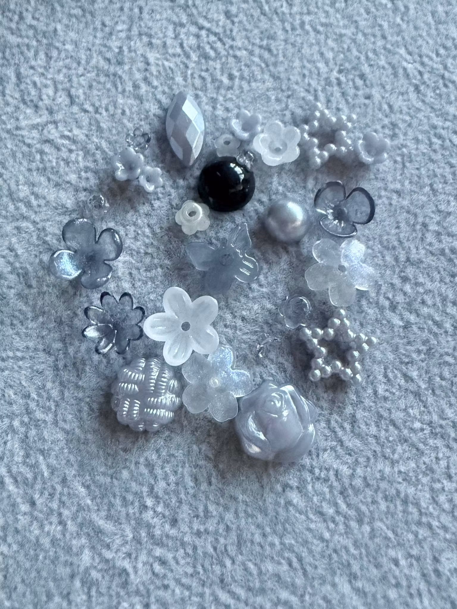 Härlig akrylamix med varierande storlek. Vissa pärlor har hål och andra med platt baksida.