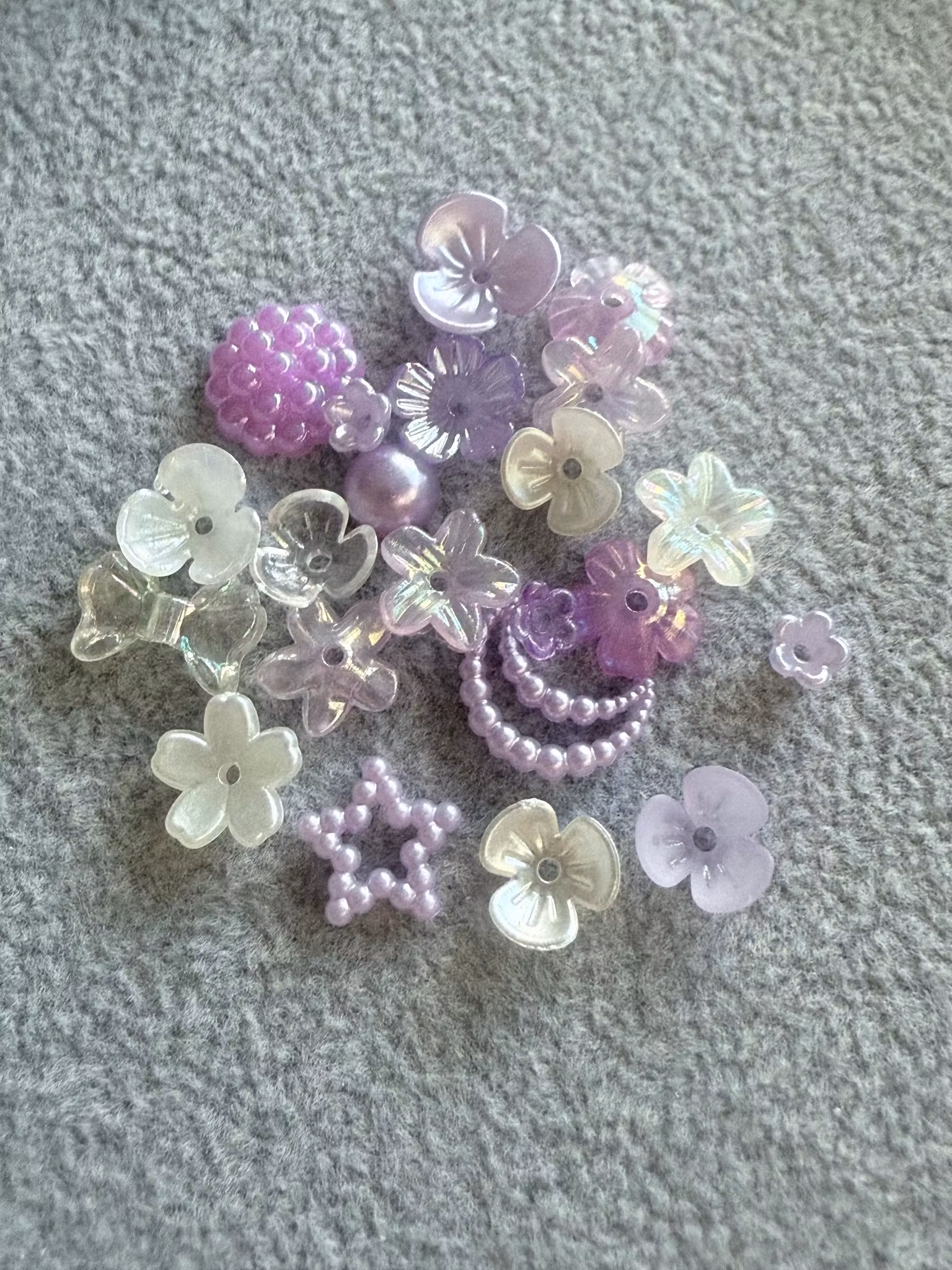 Härlig akrylamix med varierande storlek. Vissa pärlor har hål och andra med platt baksida.