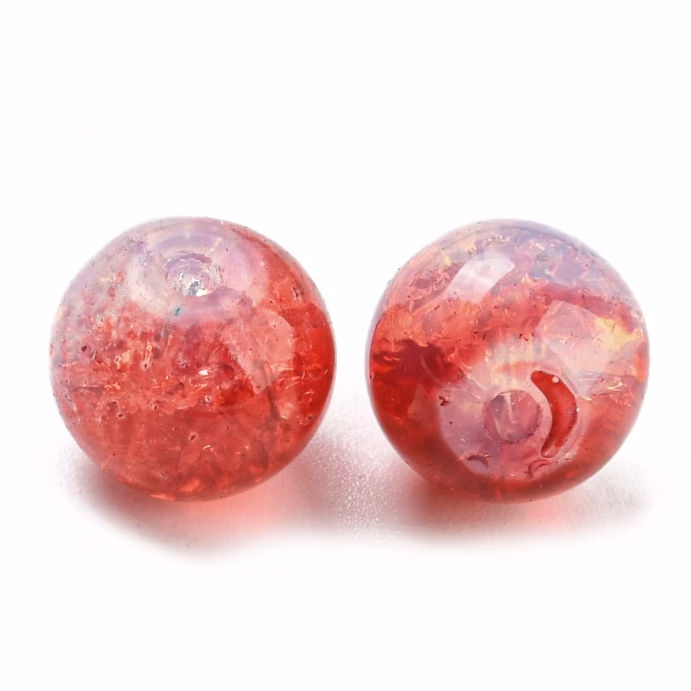 Krackelerad Två Tonad Röd Glaspärla 10mm, 50st