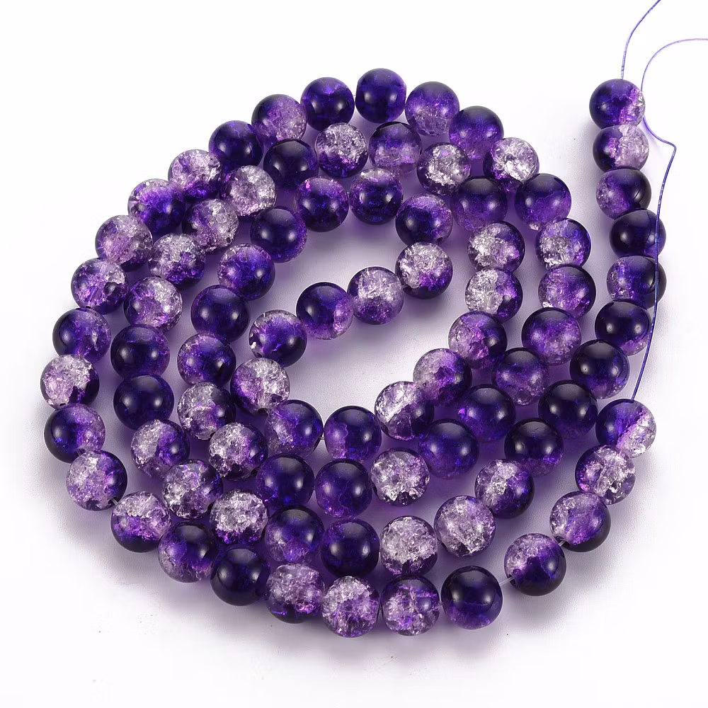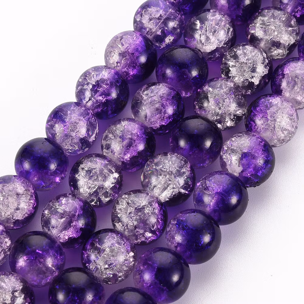 Krackelerad Lila 6mm Glaspärla, 1 sträng