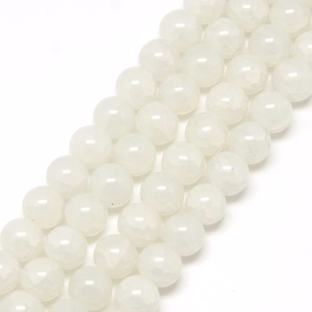 Dovt Krackelerad Kräm Vit Glaspärla 8mm, 1 sträng