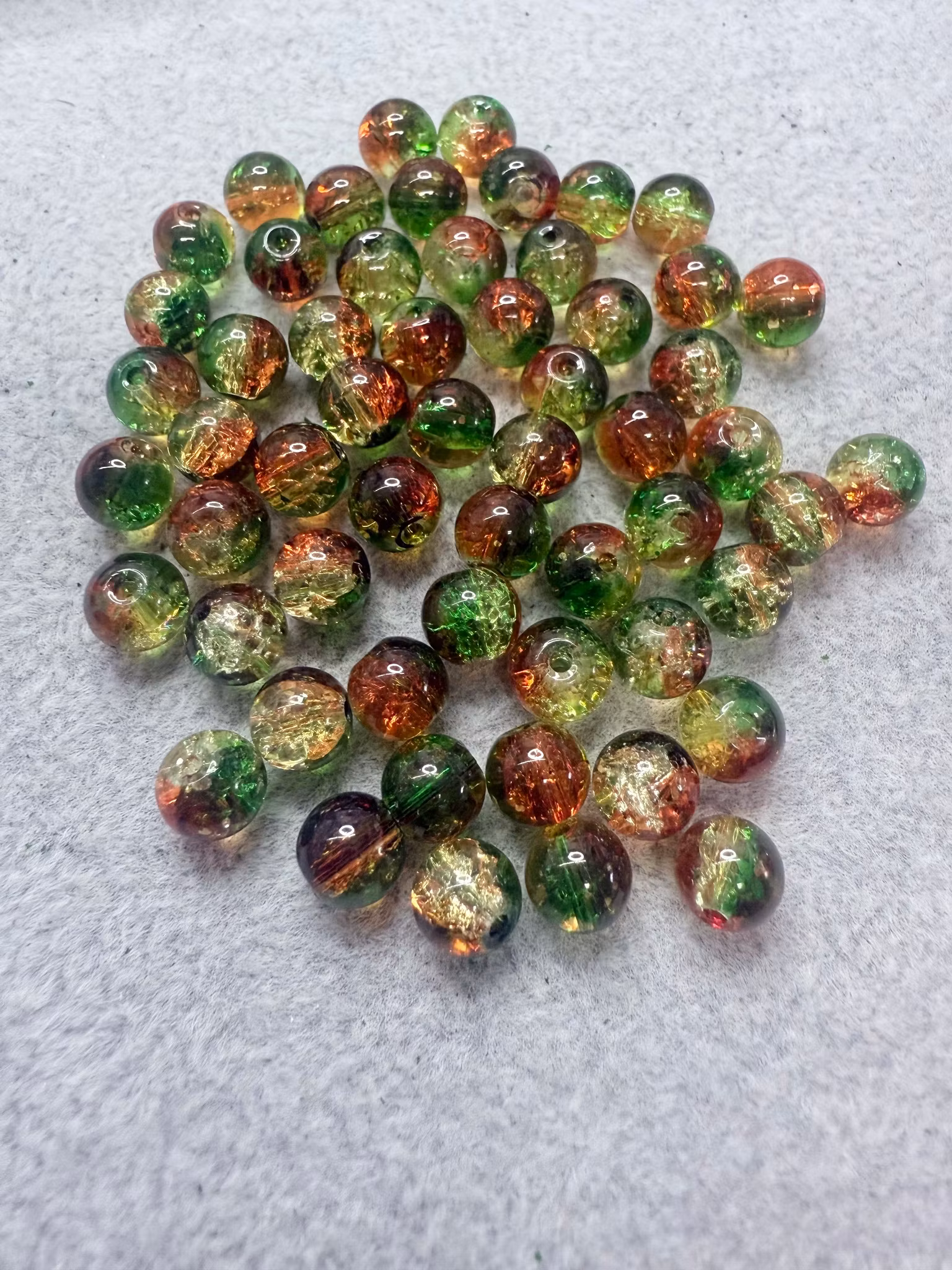 Krackelerad Grön/Brun Glaspärla 8mm, 50st