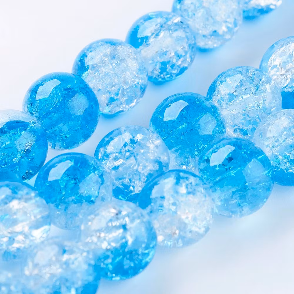 Krackelerad två tonad Blå 8mm, ca 50st pärlor på en sträng