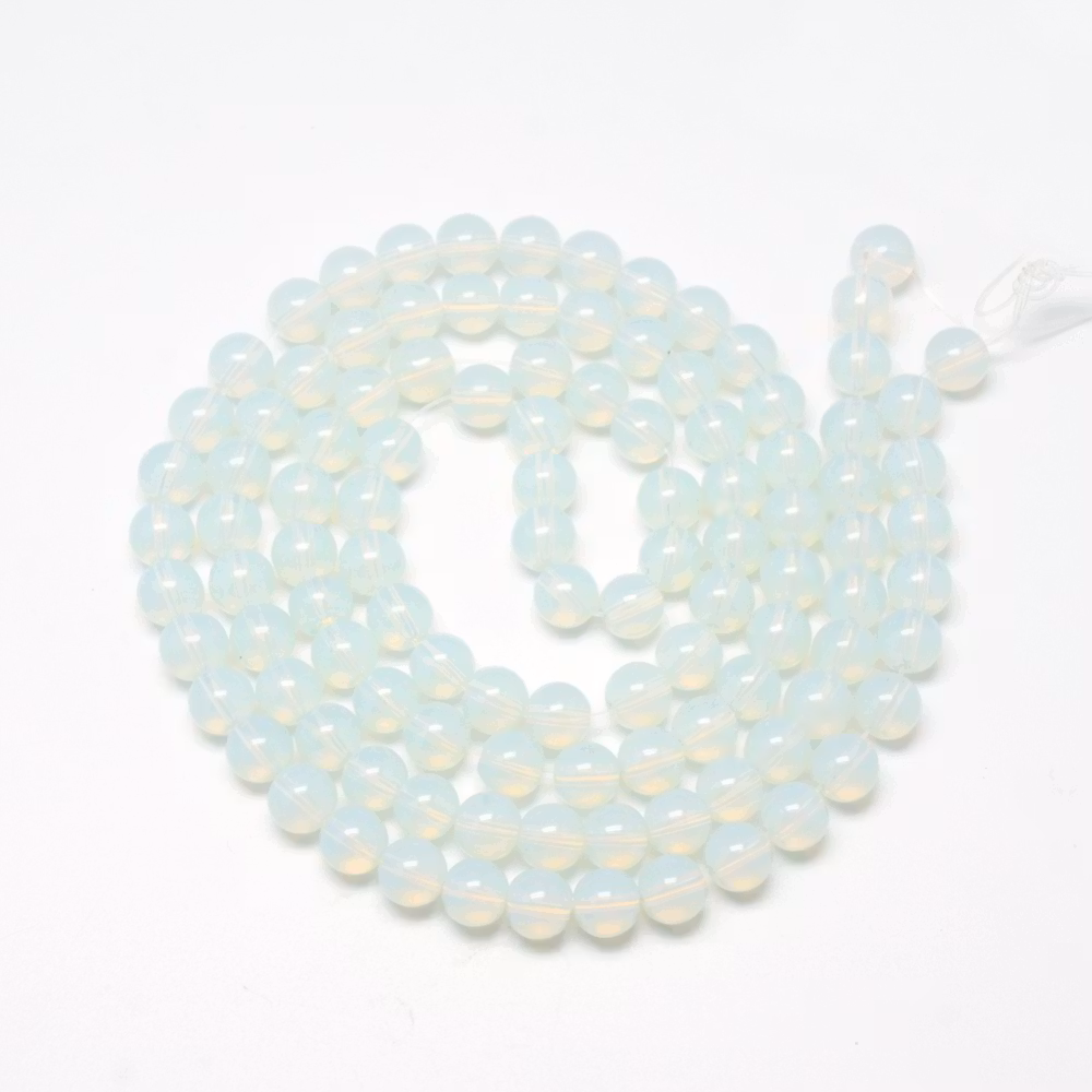 Opalite Imitation Vit 8mm, 1 sträng Ca 100-130st pärlor Hål: 1,6mm