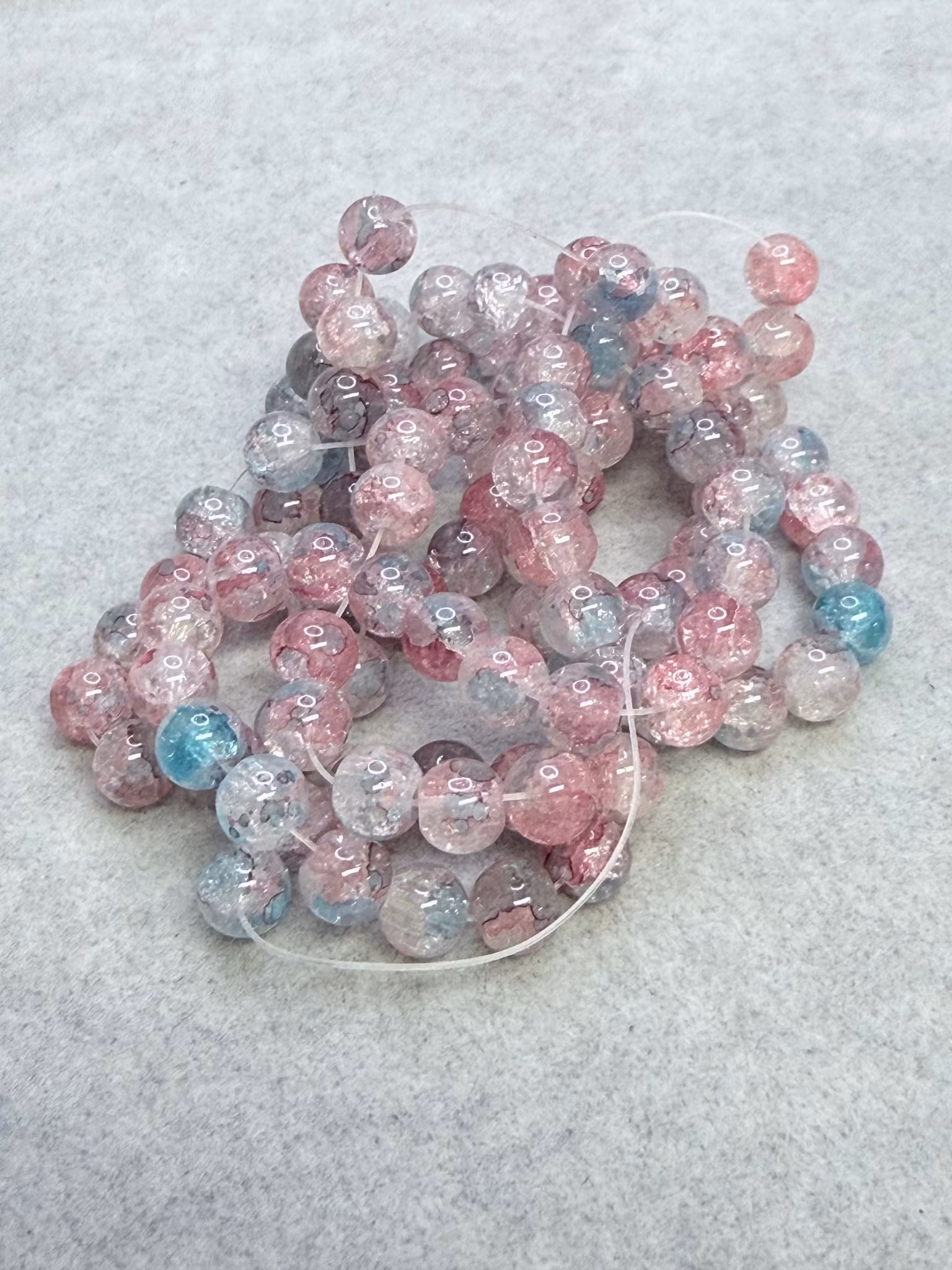 Röd/Blå krackelerad glaspärla 8mmCa 100st pärlor på en sträng