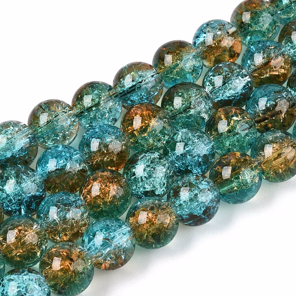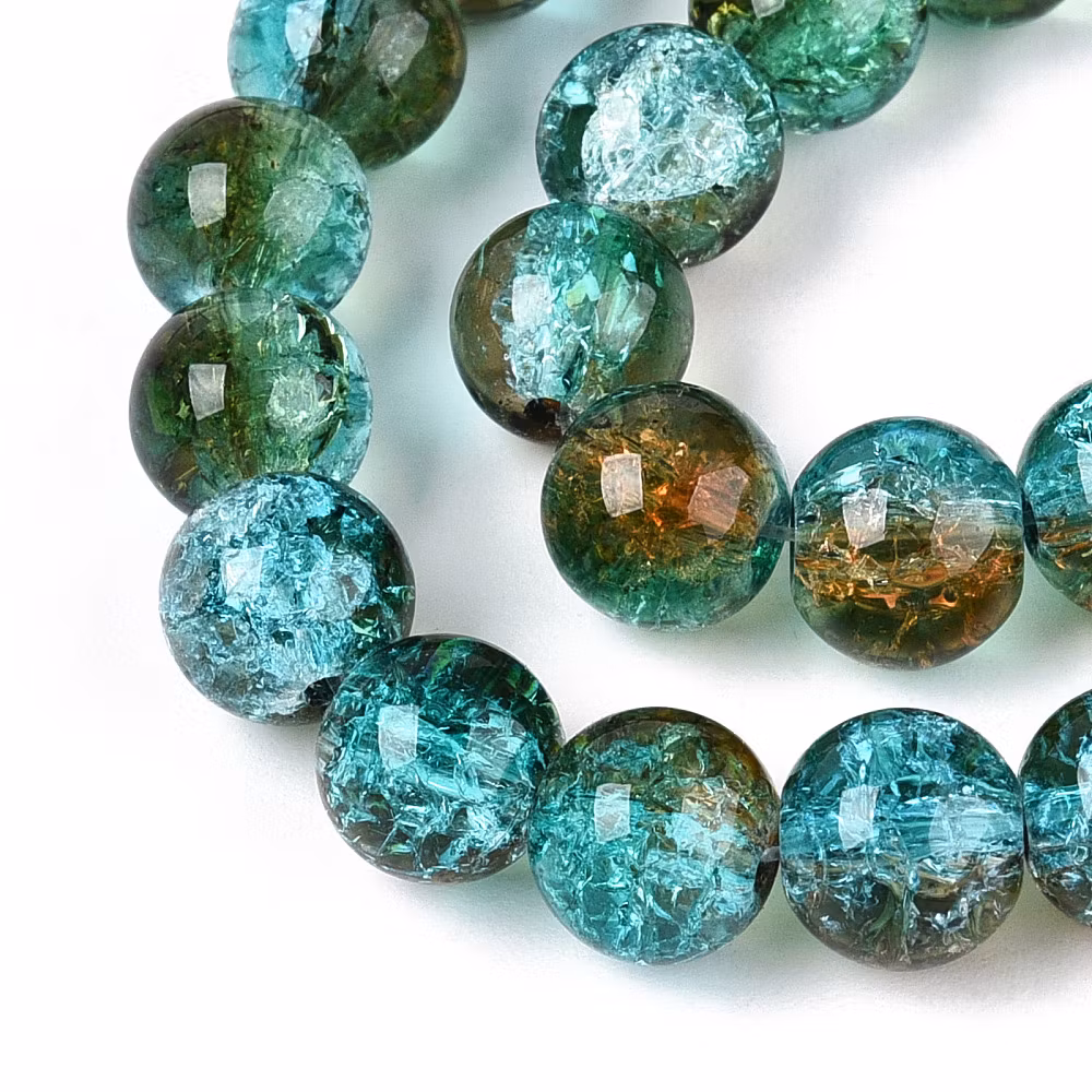 Två Tonad Krackelerad Dark Cyan Glaspärla 8mm, ca 100st