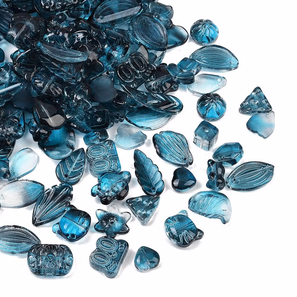 En härlig glas mix i svart/blå i olika former. Alla pärlor har hål för att användas till tex armband, carhanger osv. Säljs i förpackning om 50st pärlo