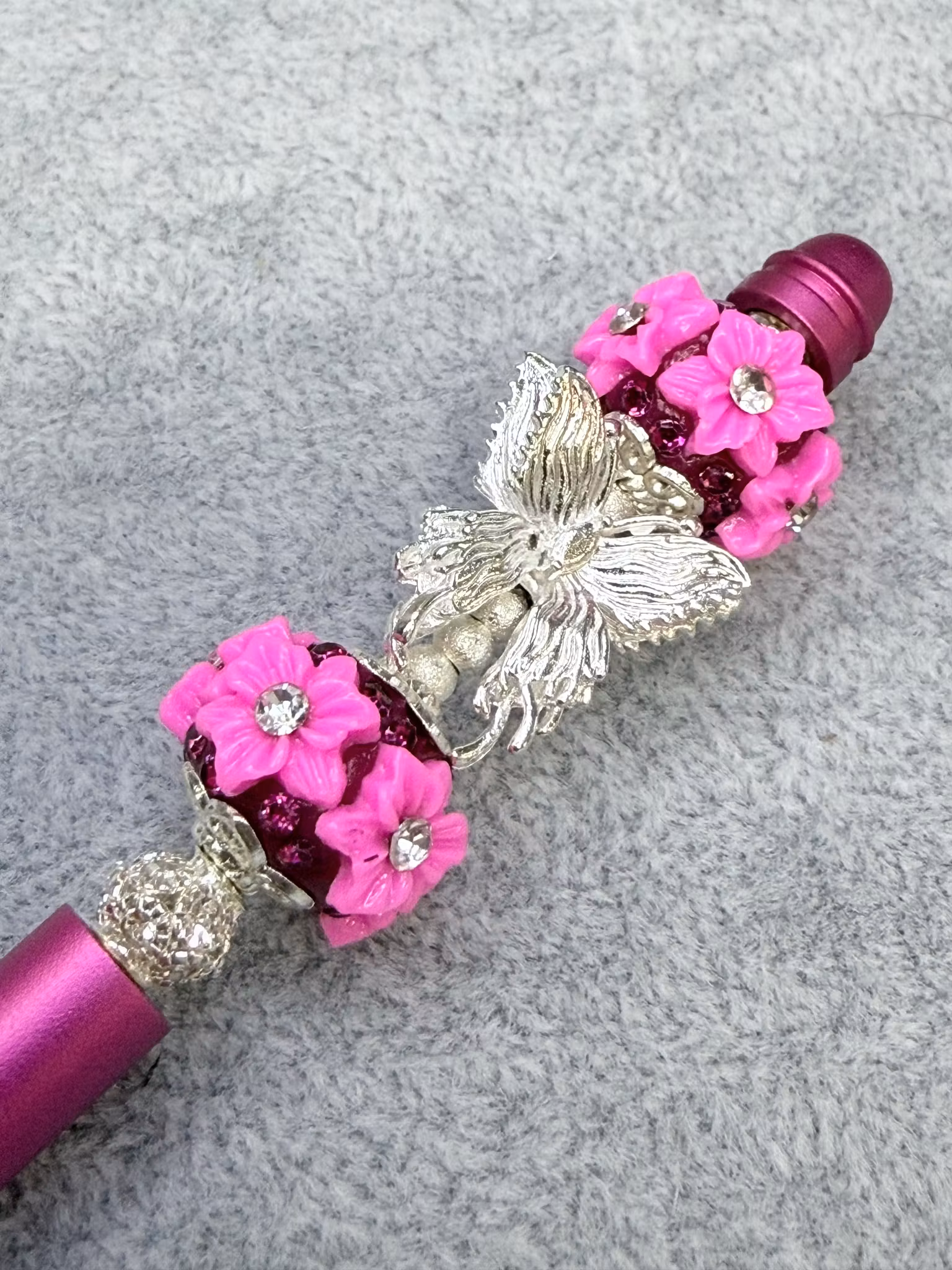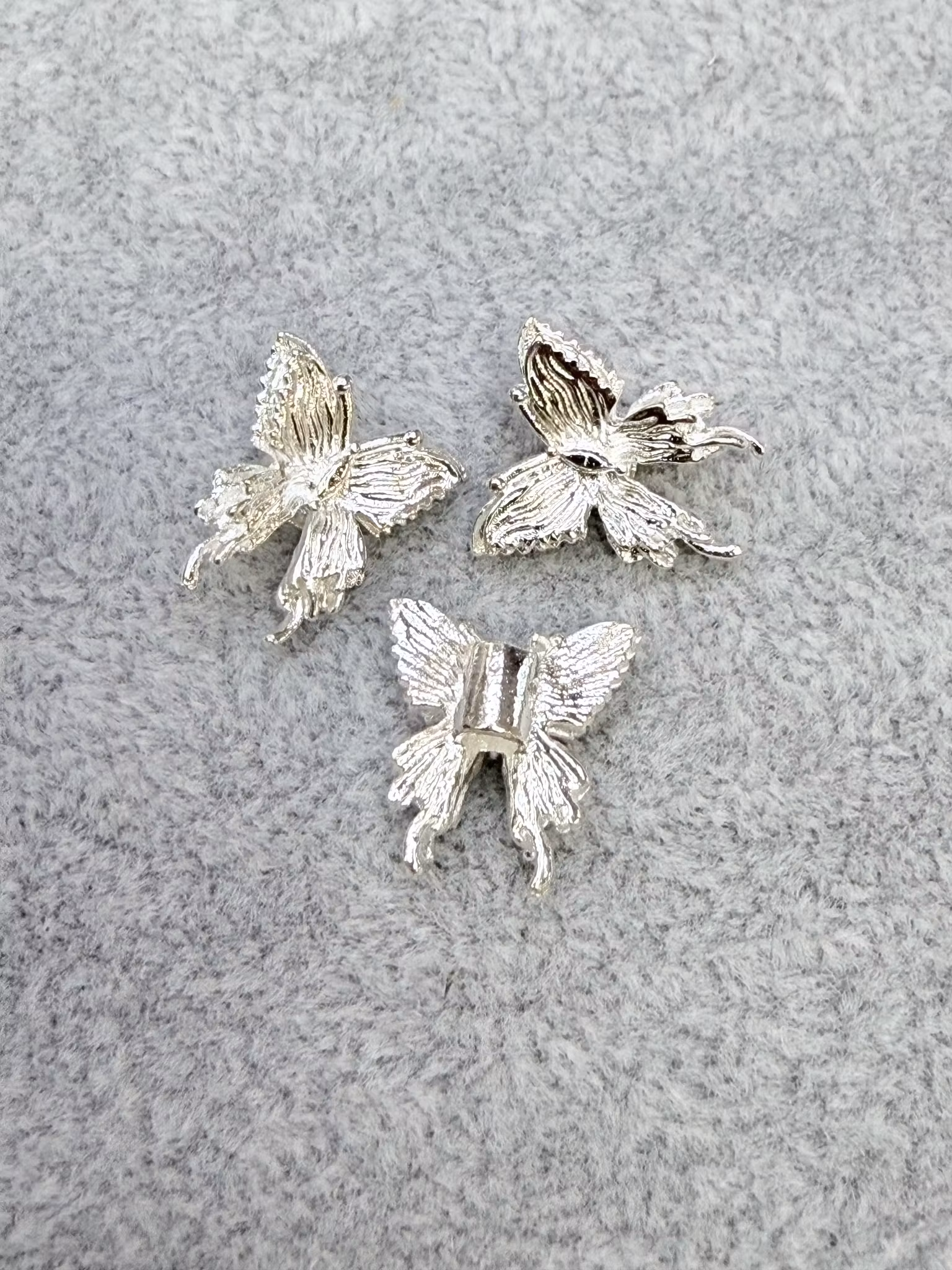 Fjäril i metall som passar till tex penna Kan även användas som mellandel men då det även är hål rakt igenom från sidan i bak.