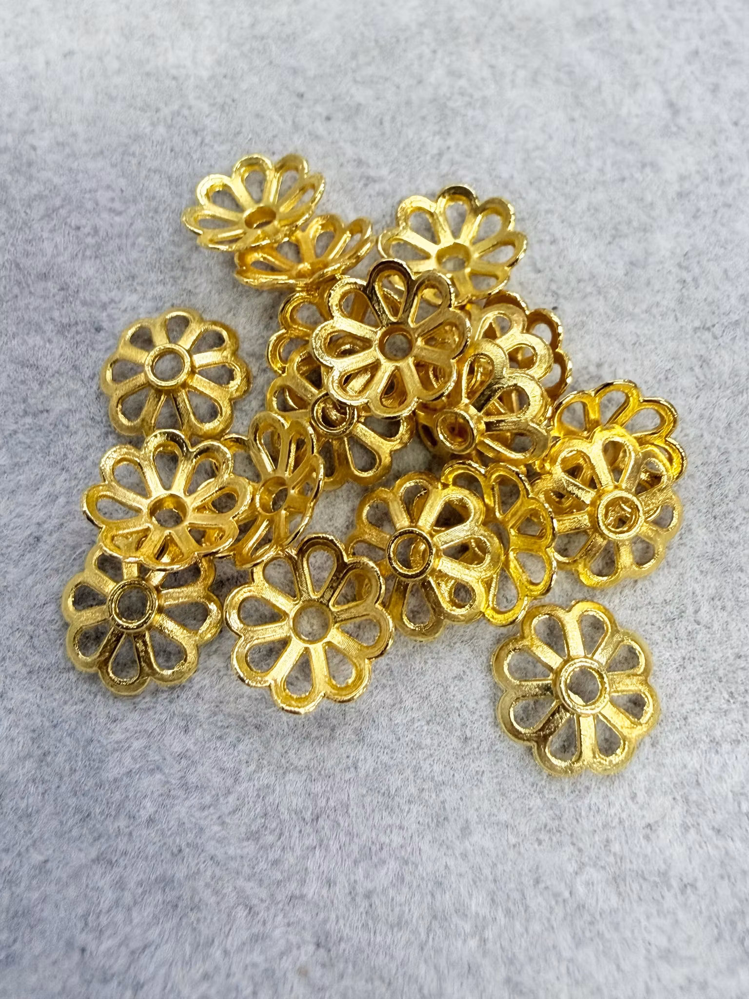 Pärlhatt Enkel Blomma Guld 10mm, 20stFin både till armband, väsksmycke, penna och så vidare. Passar även till 16mm pärlor