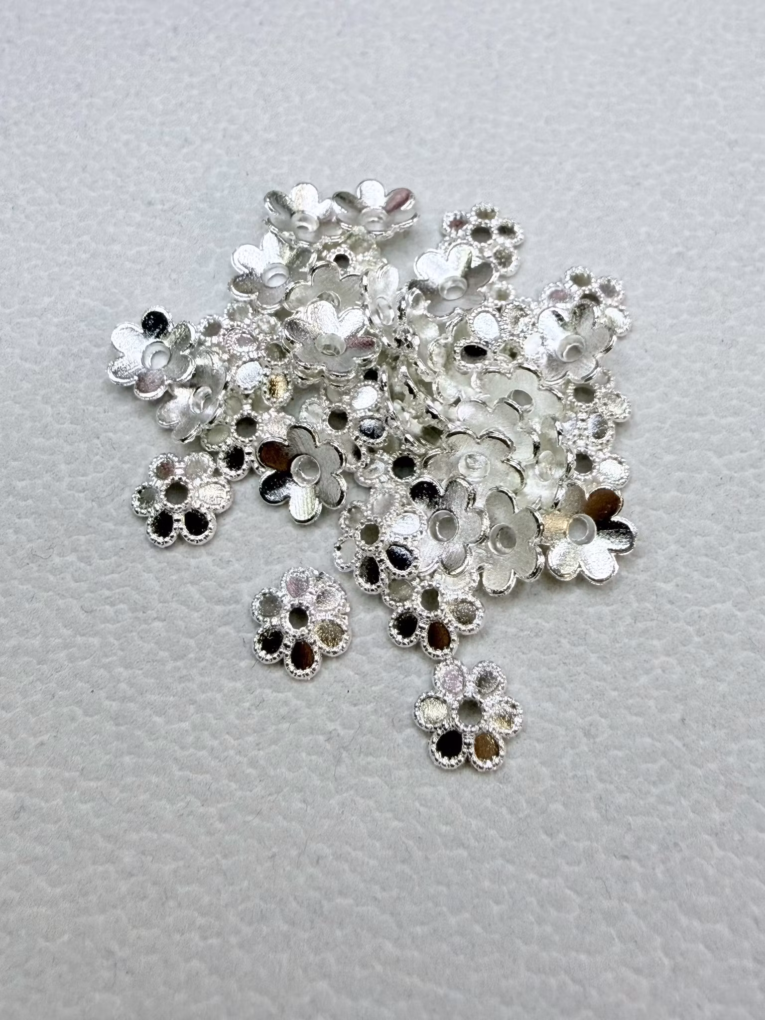 Pärlhatt Blomma Silver 8mm, 50st